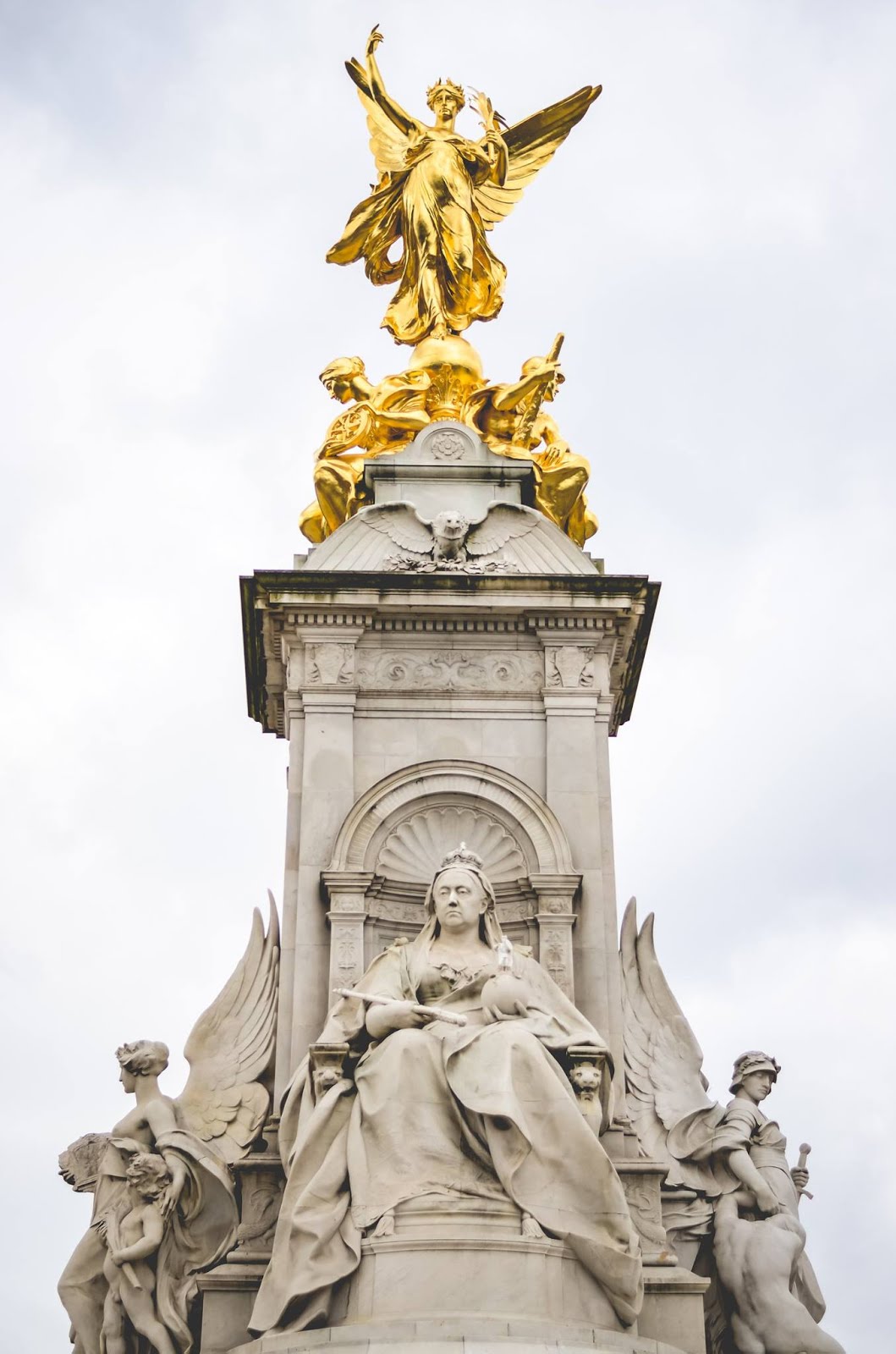 Next, we turned our attention to the Victoria Memorial outside of the palace. This beautiful monument to Queen Victoria was designed in 1901 and unveiled in 1911, although not actually completed until 1924. Great works such as these take time. The memorial is monumental (see what I did there?), including elaborate iconographic sculptures made of marble and bronze.Due to the high volume of people in the area, it was impossible to get a picture of the entire thing without 101 random strangers photobombing my attempts. Therefore, I present you with the tops. Google has full, undistributed pictures for your viewing pleasure.